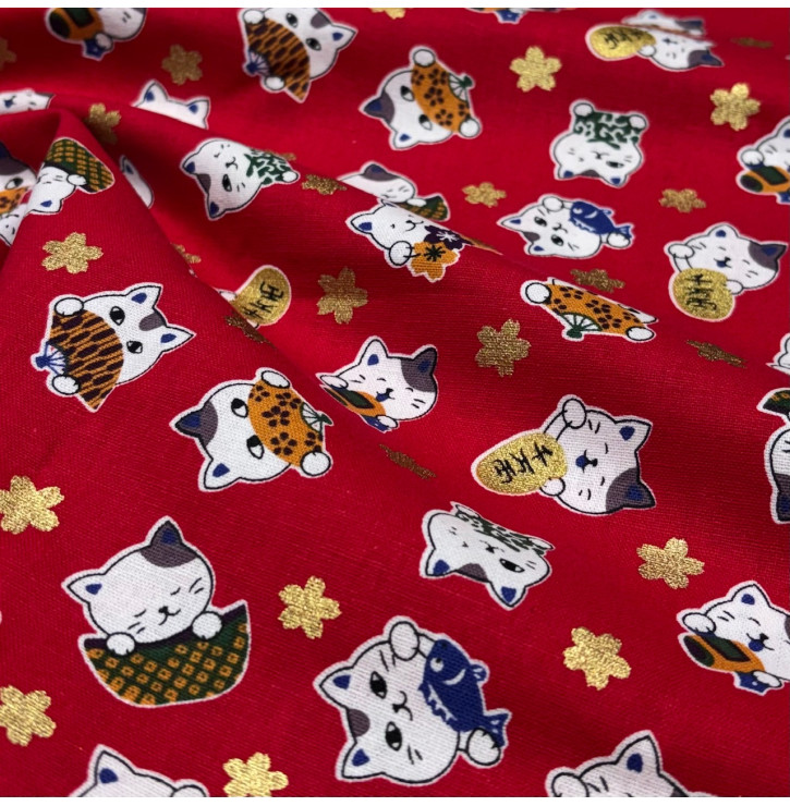Le coton Foil Minet Rouge apporte une touche à la fois ludique et décorative grâce à ses adorables motifs de chats japonais, sublimés par de fins détails dorés. Son fond rouge intense donne du caractère au tissu tout en mettant en valeur chaque motif pour un rendu joyeux et original.