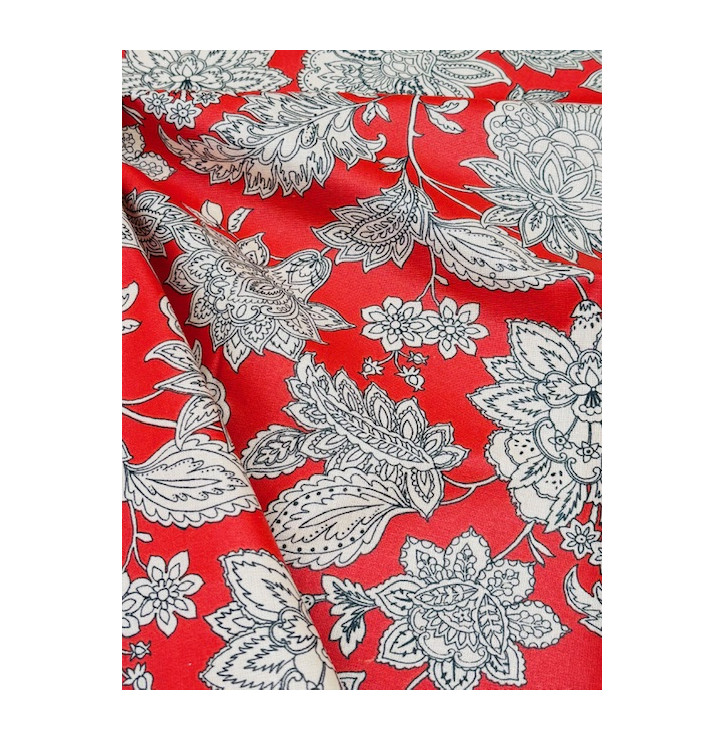 Chaleureux et sophistiqué, le coupon coton enduit “Sharma” Terracotta séduit par son motif floral finement dessiné, au contraste élégant sur fond terracotta profond.
