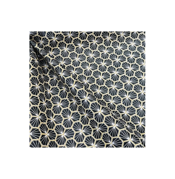 Le coton enduit imprimé Graphique Riad noir séduit par son motif géométrique raffiné, inspiré des lignes architecturales et des ambiances orientales. Son contraste noir et beige apporte une touche à la fois moderne, chic et intemporelle.