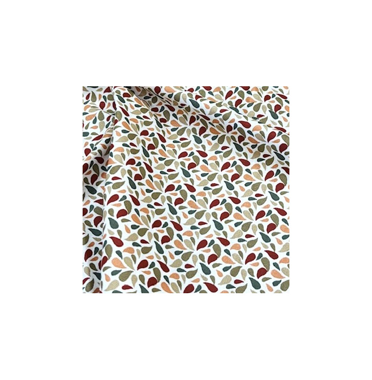 • Motif : petites feuilles gouttes kaki, terracotta, beige et ocre