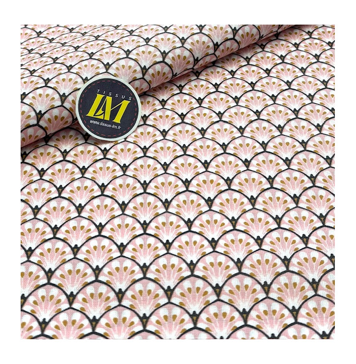Le coton enduit Gaudi Rose est un tissu imperméable décoratif au motif Art Déco graphique, idéal pour la couture créative et les accessoires du quotidien. Souple et facile à coudre grâce à son enduction légère, il est disponible en coupons prédécoupés et en vente au mètre.