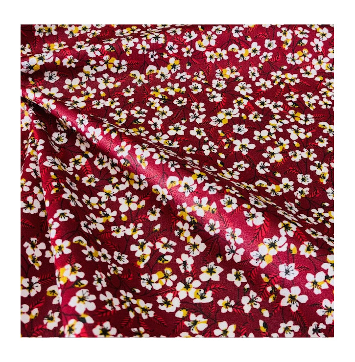 Tissus Coton Enduit / Fleurs Miyu - Rouge - Coupon
