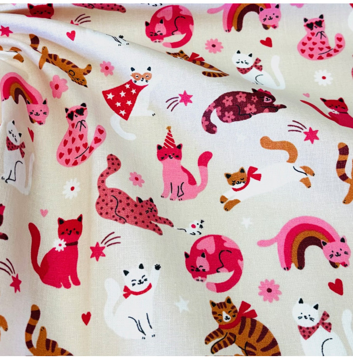 Tissus Coton Enduit / Chat Pacha - Rose - Coupon