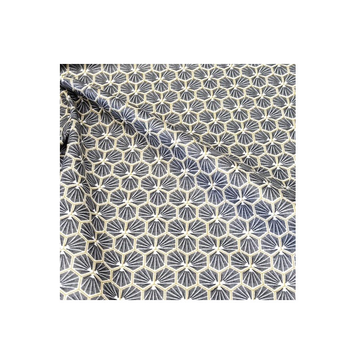Le coton enduit imprimé Graphique Riad gris ardoise séduit par son motif géométrique raffiné, inspiré des lignes architecturales et des ambiances orientales. Son contraste noir et beige apporte une touche à la fois moderne, chic et intemporelle.