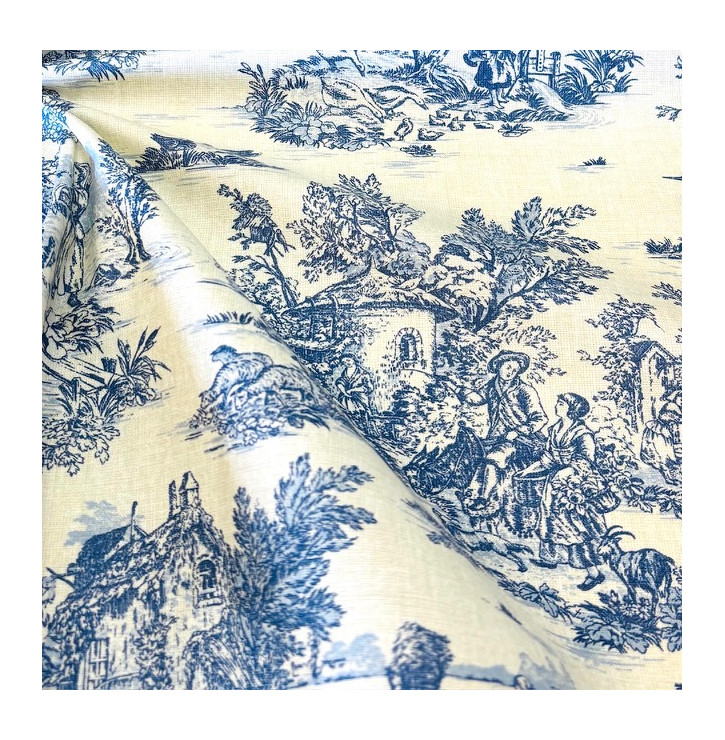 Le tissus coton enduit Mini Pastorale Toile de Jouy lin & bleu est un tissu imperméable décoratif au motif classique et raffiné. Sa enduction légère lui apporte souplesse et confort de couture, idéal pour des créations élégantes au style intemporel. Proposé en coupon prédécoupé, prêt à coudre.
