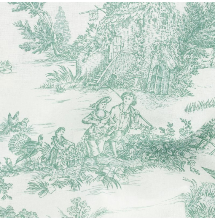 Tissus Coton Enduit / Toile de Jouy Mini Pastorale - Lin & Vert - Coupon