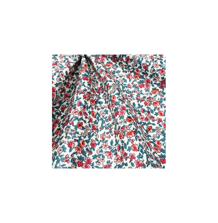 Tissu Coton Enduit / Fleurs Léonie - Corail | Coupon