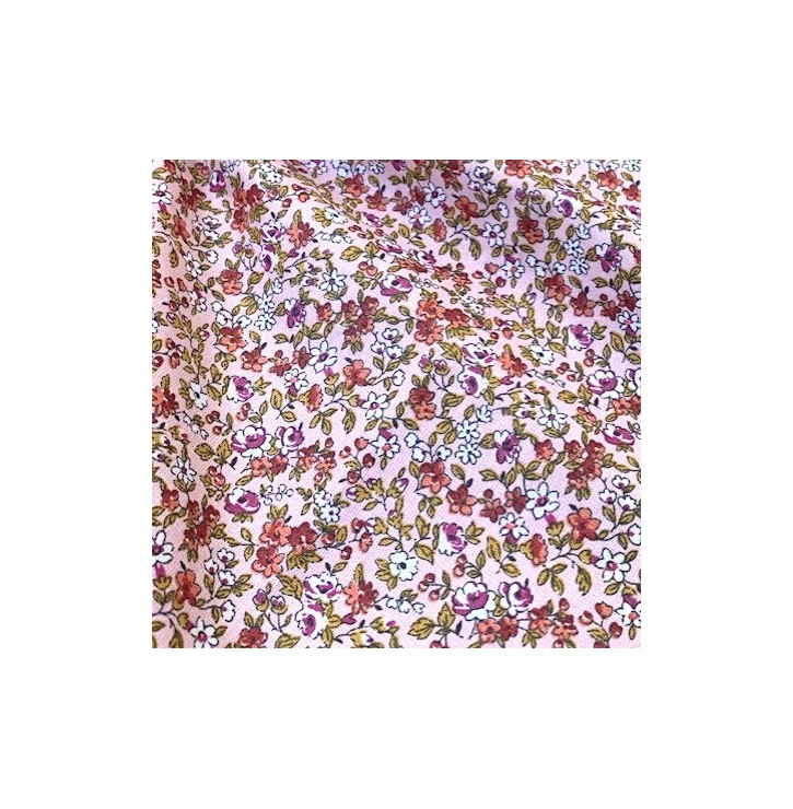 Tissu Coton Enduit / Fleurs Léonie - Rose | Coupon