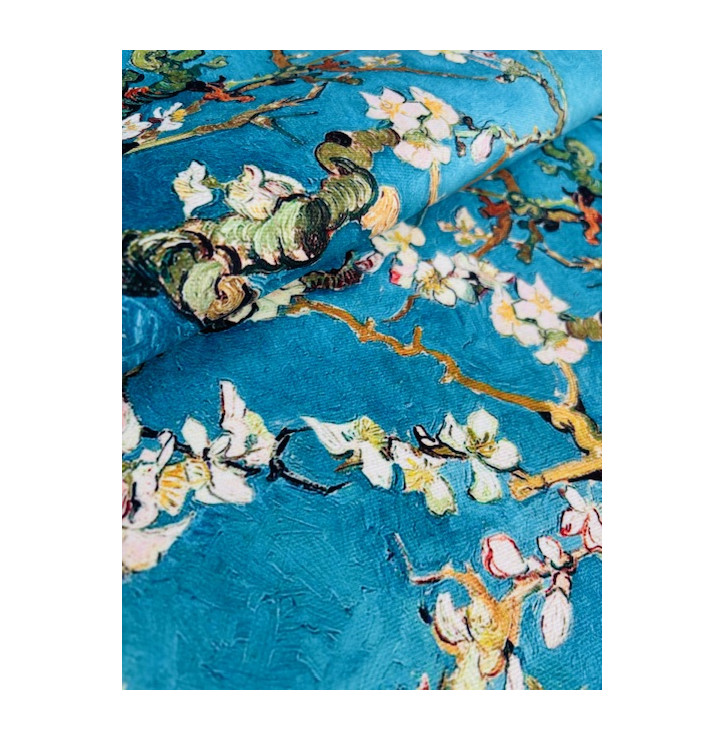 Inspiré de l’œuvre emblématique Amandier en fleurs de Van Gogh, ce tissu propose une interprétation lumineuse et fraîche du motif, sur un fond turquoise profond. Grâce à l’impression digitale, chaque branche, chaque pétale et chaque coup de pinceau est reproduit avec une fidélité remarquable. C’est un tissu qui évoque la peinture tout en se cousant comme un rêve.