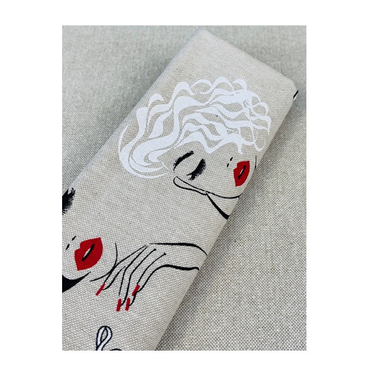 Ce coupon en toile Palace 50 x 140 cm, composé de 75% coton / 25% polyester (≈205 g/m²), présente un motif élégant inspiré de l’univers glamour : visages féminins, lèvres rouges et détails graphiques. Idéal pour accessoires, déco et ameublement léger.