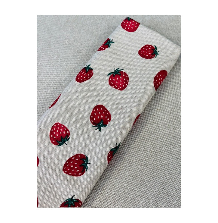 Ce coupon en toile Palace 50 x 160 cm présente de jolies fraises rouges sur fond naturel. Un tissu d’ameublement résistant, idéal pour accessoires, décorations et projets DIY.