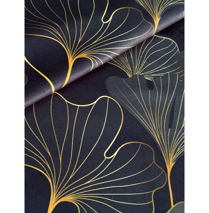 Découvrez le Coupon Velours Palatine "Ginkgo Tiffany" – Noir Doré (50 × 70 cm), un tissu velours haut de gamme parfait pour sublimer vos créations. Son motif ginkgo finement tracé en doré sur fond noir/gris apporte un style élégant, moderne et luxueux, très recherché en couture créative et décoration intérieure.