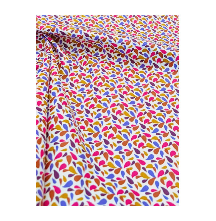 Léger, pétillant et graphique, ce coton enduit Otma Caramel Violet est un vrai coup de cœur pour vos projets DIY ! De petites feuilles stylisées dans des tons caramel, violet, fuchsia et ocre dansent sur un fond blanc lumineux. Un motif fin et délicat, idéal pour les accessoires cousus main. Déperlant, souple et facile à travailler, ce tissu est parfait pour vos envies de couture pratique et raffinée.