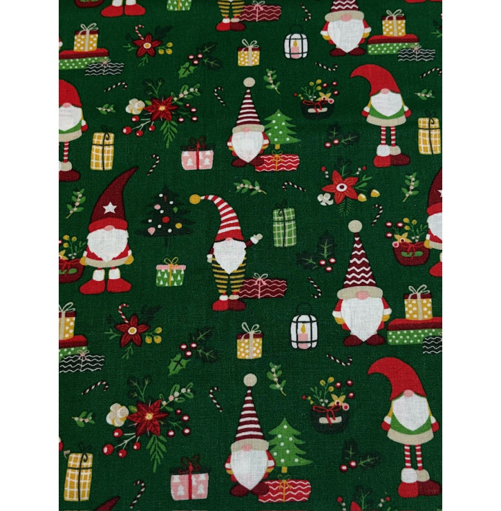 Ce tissu en coton propose un motif ludique et chaleureux mettant en scène de charmants lutins de Noël, entourés de cadeaux, sapins, fleurs festives et petits éléments décoratifs. Son fond vert sapin renforce l’esprit traditionnel et joyeux des fêtes. Proposé en coupon de 1 m x 150 cm, il est idéal pour la confection d’accessoires, sacs, suspensions, déco de table, coussins, lingettes et projets DIY destinés à la période de Noël. Facile à coudre et agréable au toucher, il apportera une touche festive et colorée à toutes vos créations.