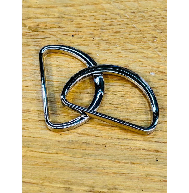 Demi-anneau plat soudé 32 mm argent : solide, haute qualité et idéal pour attaches de sacs, anses, bandoulières et accessoires couture.