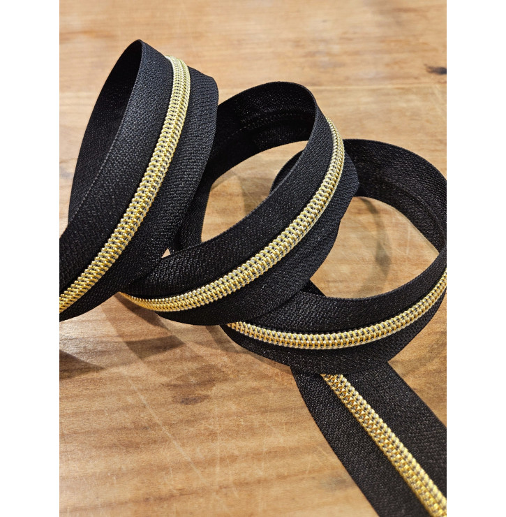 Fermeture Éclair Lurex / Noir & Doré – Maille 5 mm