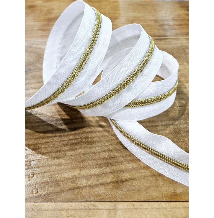 Fermeture Éclair Lurex / Blanc & Doré – Maille 5 mm