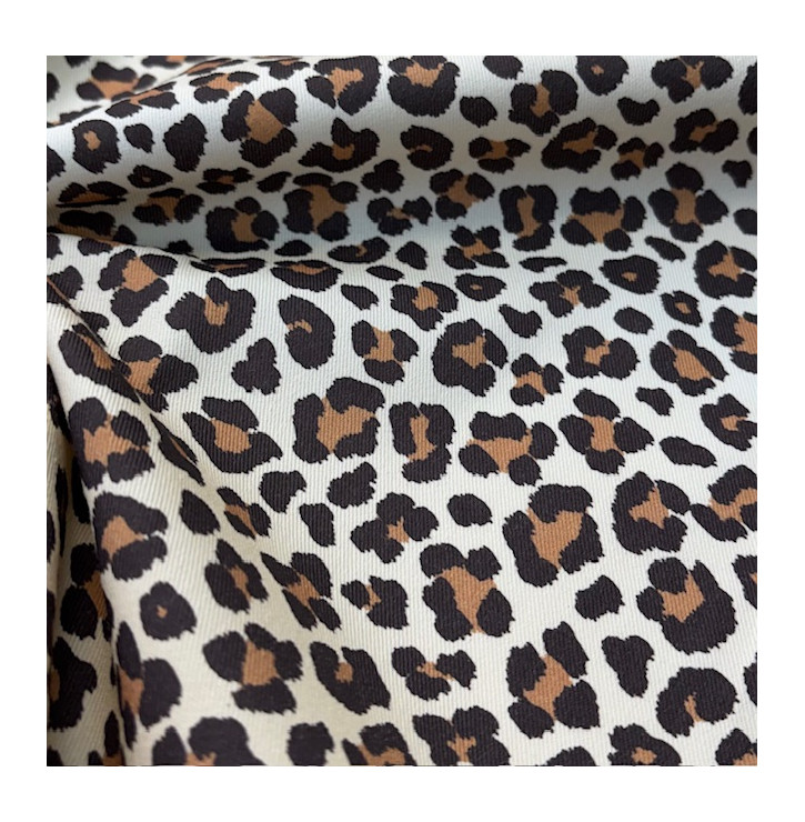 Affirmez votre style avec ce sergé de coton léopard écru un tissu au motif animalier intemporel Grâce à son impression digitale de haute qualité et sa fabrication made in France il séduit par ses couleurs nettes son touché naturel et sa tenue parfaite Un tissu de 220 gm² qui allie élégance et caractère pour des créations couture DIY uniques et audacieuses.