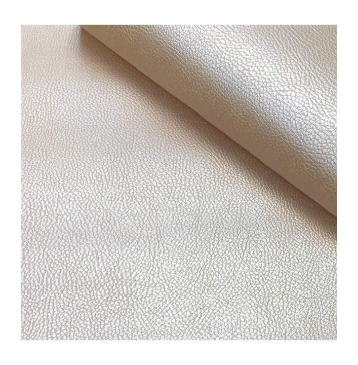 Ce simili cuir métallisé nacré apporte une touche de douceur et d’élégance aux créations couture. Son grain fin associé à un effet nacré subtil capte la lumière et crée un rendu lumineux et raffiné.