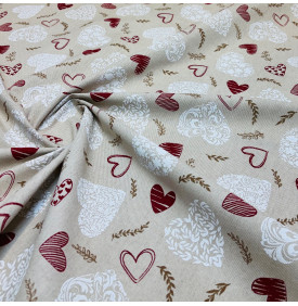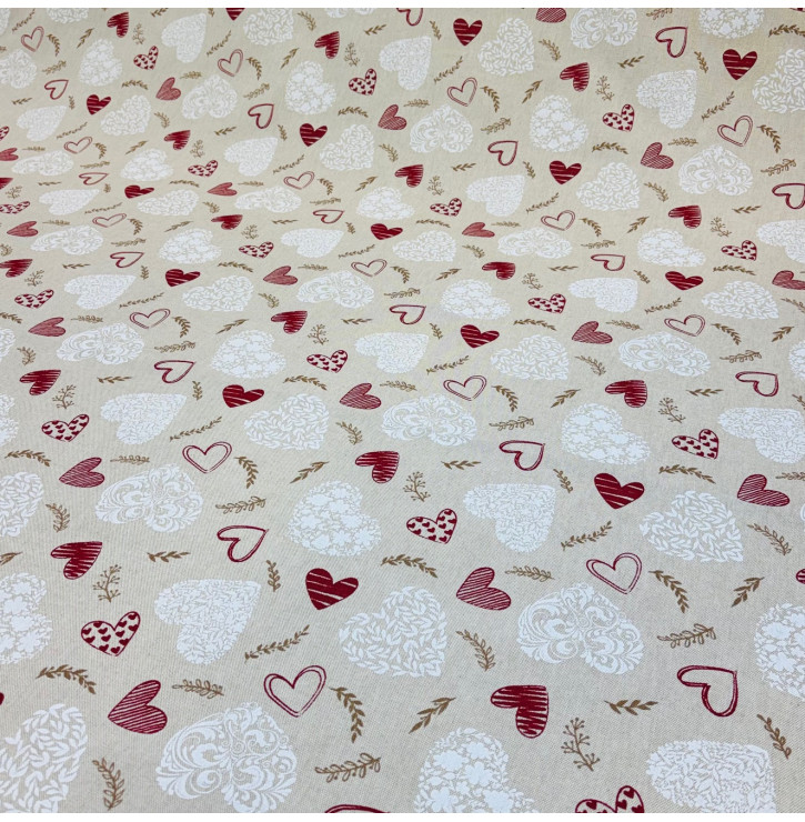 Toile Palace Imprimée "Cœurs" Écru / Rouge – Largeur 140 cm – Tissu Déco & Ameublement