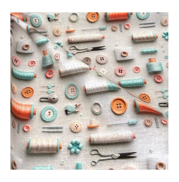 Tissu coton digital imprimé, au motif couture en effet 3D, inspiré de l’univers des loisirs créatifs et de l’atelier couture. Décliné dans des tons gris sobres et élégants, ce tissu offre un rendu graphique moderne avec une belle profondeur visuelle. Souple et agréable à travailler, il est idéal pour la couture du quotidien, les accessoires et les projets DIY.