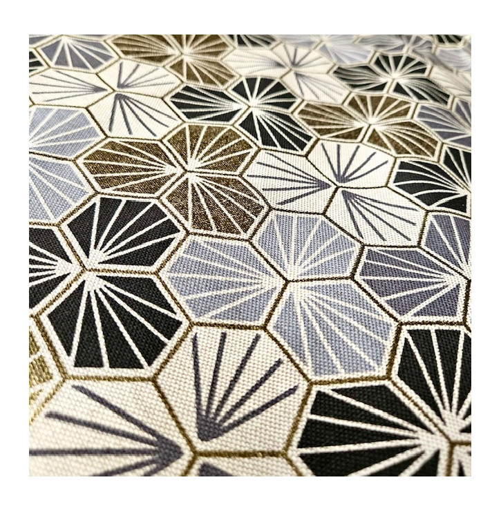 Craquez pour le tissu Palace Foil « Faro », un textile élégant et moderne sublimé par de superbes motifs géométriques avec délicats reflets dorés. Souple, agréable à coudre et doté d’une belle tenue, il est parfait pour la déco, coussins, sacs, pochettes et accessoires chics.