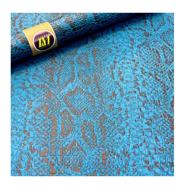 Simili Cuir Croco Snake / Bleu Canard