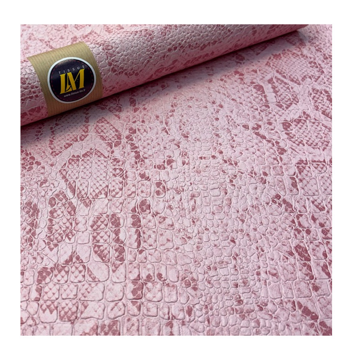 Apportez une touche douce et sophistiquée à vos créations avec ce simili cuir Croco Snake coloris Rose. Son effet reptile embossé, inspiré des textures croco et snake, associé à une finition, offre un rendu chic et contemporain, parfait pour des projets couture raffinés.