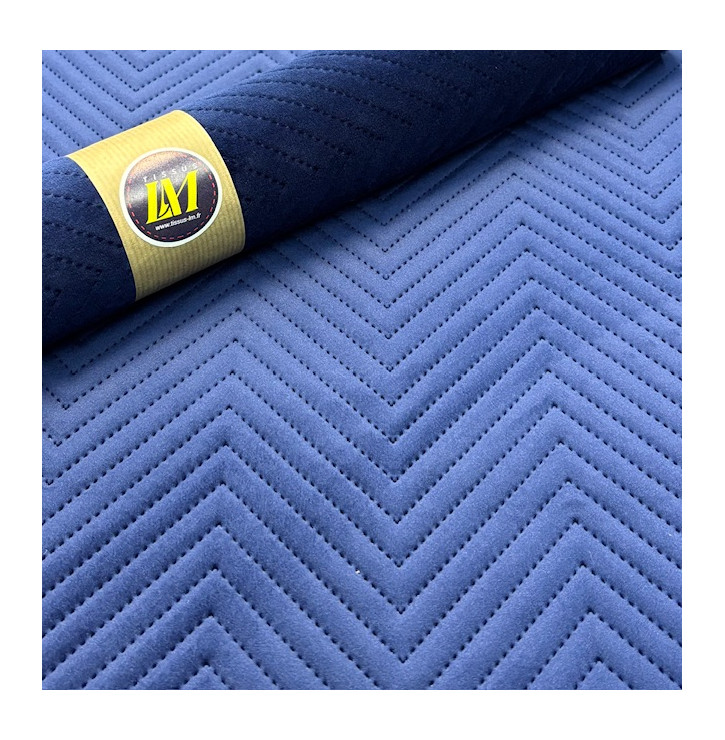 Apportez profondeur et élégance à vos créations avec ce tissu velours matelassé chevron au coloris marine à la fois chic et contemporain
