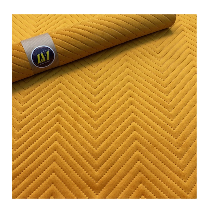 Craquez pour ce velours matelassé chevron jaune, un tissu au relief graphique moderne et au toucher ultra doux.