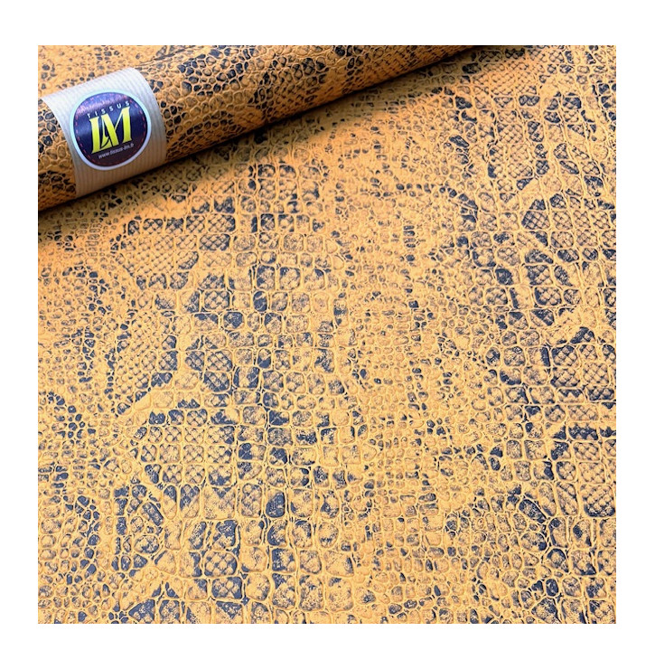 Apportez de la chaleur et du caractère à vos créations avec ce simili cuir Croco Mat Snake coloris Jaune Orangé. Son effet reptile embossé, inspiré des textures croco et snake, combiné à une finition mate, offre un rendu moderne, lumineux et affirmé.