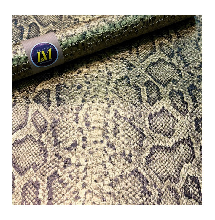 Sublimez vos créations avec ce simili cuir Croco Mat Snake coloris Or, un tissu à l’effet reptile embossé inspiré des textures croco et snake, associé à une finition mate pour un rendu élégant et haut de gamme.