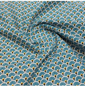 • Coton Imprimé / Éventails Doré Bleu Canard
