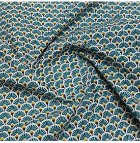Coton Imprimé / Éventails Doré Bleu Canard