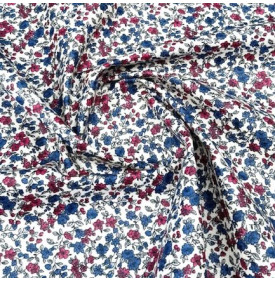 Tissu Coton Enduit / Fleurs Léonie - Bleu & Rouge | Coupon