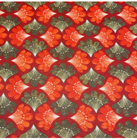 Coton Enduit / Fleuri Capucine Rouge – Coupon
