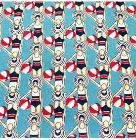 7,35 €Un superbe coupon de coton enduit au design fun et retro, illustré de nageuses stylisées sur fond bleu vaguelettes. Une ambiance estivale, fraîche et pleine de caractère, parfaite pour des créations originales et pleines de charme.