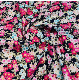 3,50 €Le coton Foil Naomi Noir séduit par ses motifs floraux délicats, inspirés de l’esthétique japonaise, sublimés par de fines touches dorées. Son fond noir profond met en valeur les fleurs colorées et apporte un contraste élégant, idéal pour des créations couture raffinées et pleines de caractère.