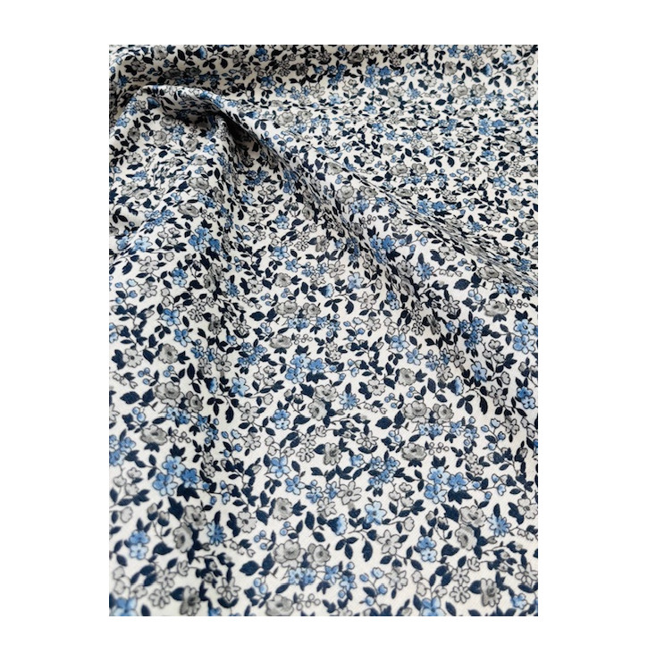Délicat et intemporel, ce coupon de coton enduit “Léonie” ivoire et bleu séduit par son motif floral fin et élégant.