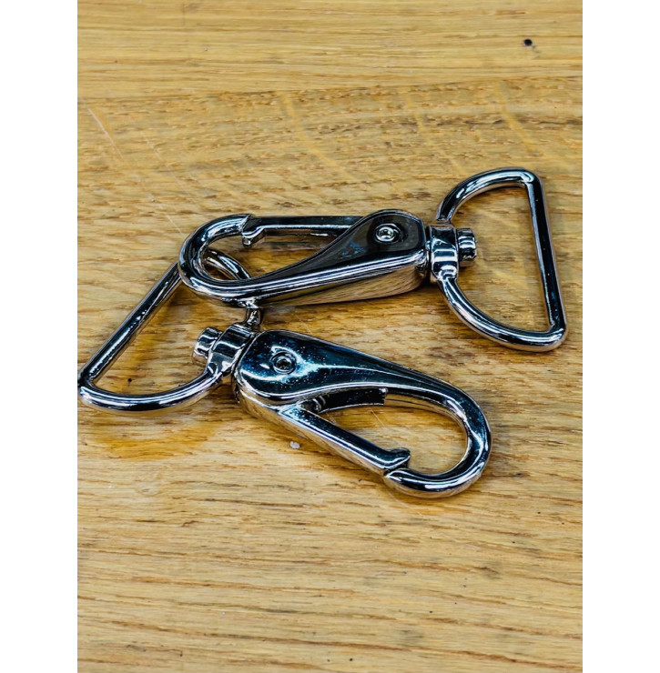 Mousqueton métal finition argent 32 mm, robuste et fonctionnel, parfait pour la réalisation de bandoulières, sacs et accessoires couture. Assure une fixation fiable et durable.