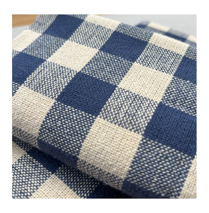Craquez pour ce coupon de tissu coton tissé teint à carreaux beige et bleu, au style intemporel.