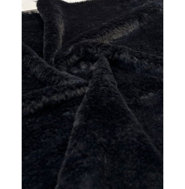 La couleur noir profond apporte un style intemporel et sophistiqué à vos projets : accessories mode, déco intérieure, pièces d’hiver ou créations fantaisie. Avec son grammage 300 g/m², cette fourrure présente un moelleux confortable, une belle tenue et un toucher velouté exceptionnel.