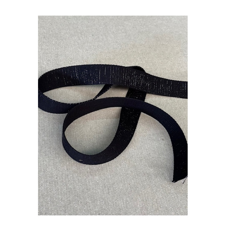 Sangle coton 30 mm noire 98% coton / 2% métalloplastique : solide, souple et élégamment scintillante. Parfaite pour anses de sacs et accessoires DIY. Vendue au mètre.