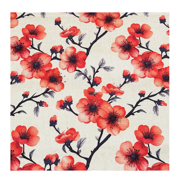Tissu Aspect Lin / Fleur de Cerisier Rouge