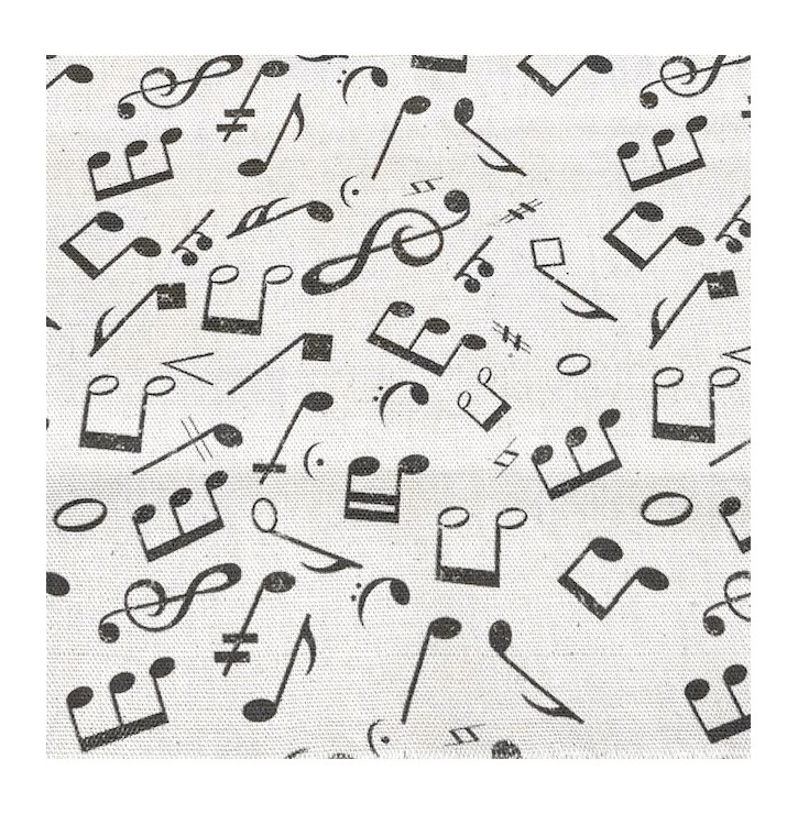 Coupon de tissu aspect lin motif Musique, illustré de notes et symboles musicaux en noir sur fond écru. Un visuel graphique et intemporel, idéal pour des créations Déco & Accessoires autour de l’univers musical. En 100 % coton, ce tissu est souple, agréable au toucher et facile à coudre. Parfait pour sacs, pochettes, coussins, housses et projets DIY.
