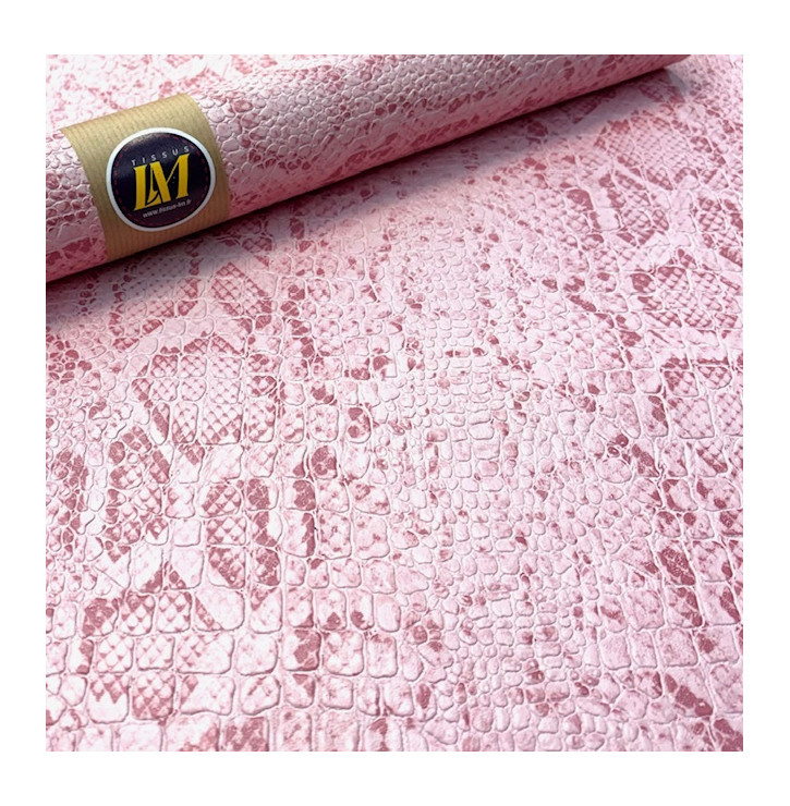 Apportez une touche douce et sophistiquée à vos créations avec ce simili cuir Croco Snake coloris Rose. Son effet reptile embossé, inspiré des textures croco et snake, associé à une finition, offre un rendu chic et contemporain, parfait pour des projets couture raffinés.