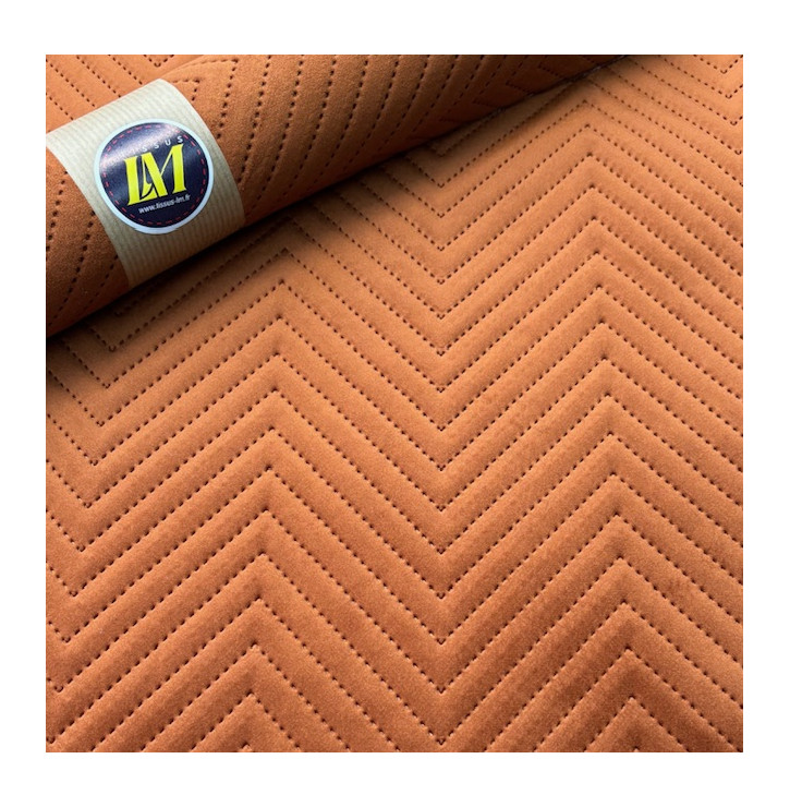 Apportez profondeur et élégance à vos créations avec ce tissu velours matelassé chevron au coloris rouille  à la fois chic et contemporain
