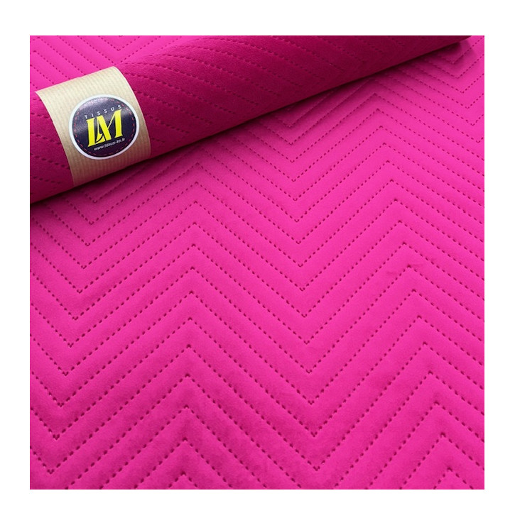 Apportez profondeur et élégance à vos créations avec ce tissu velours matelassé chevron au coloris rose à la fois chic et contemporain