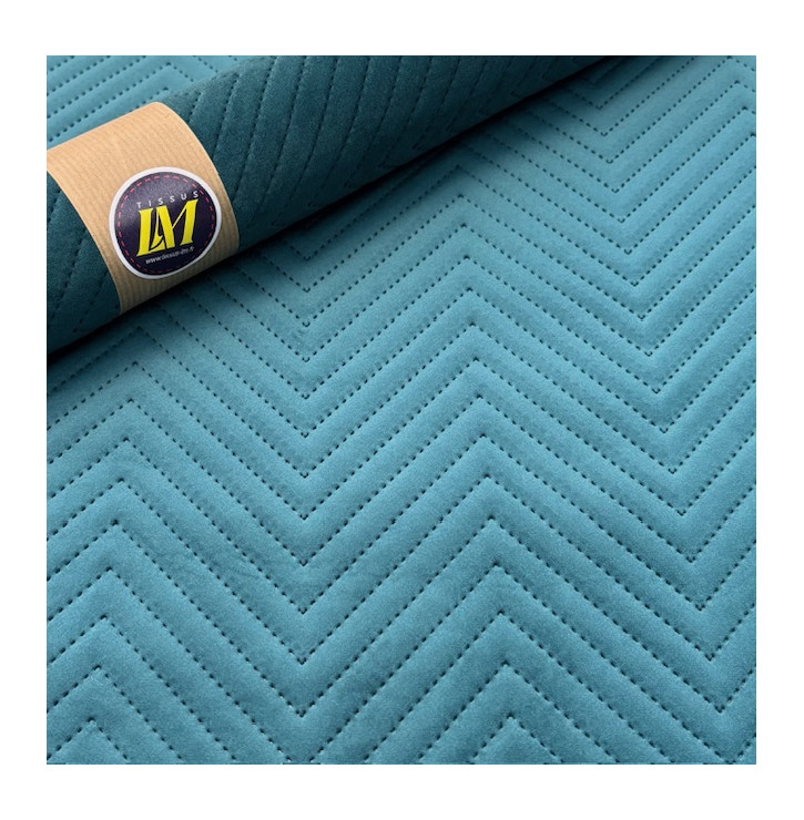 Apportez profondeur et élégance à vos créations avec ce tissu velours matelassé chevron au coloris canard, à la fois chic et contemporain.