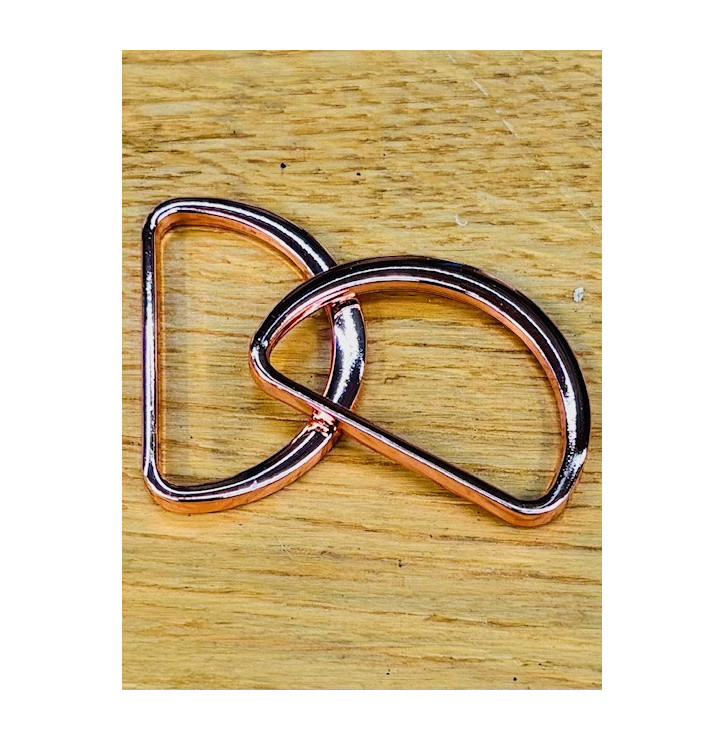 Demi anneau métal finition rouge gold 32 mm, robuste et moderne, parfait pour la réalisation de sacs, bandoulières et accessoires couture. Apporte une finition chic et chaleureux.